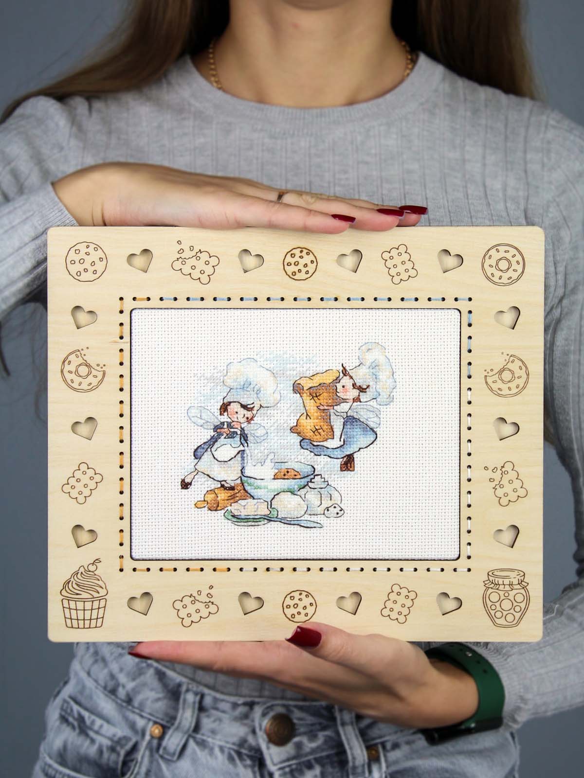 1. Подберите вышивку для оформления. Ткань, на которой выполнена работа, должна быть равна размеру рамы или быть больше нее.