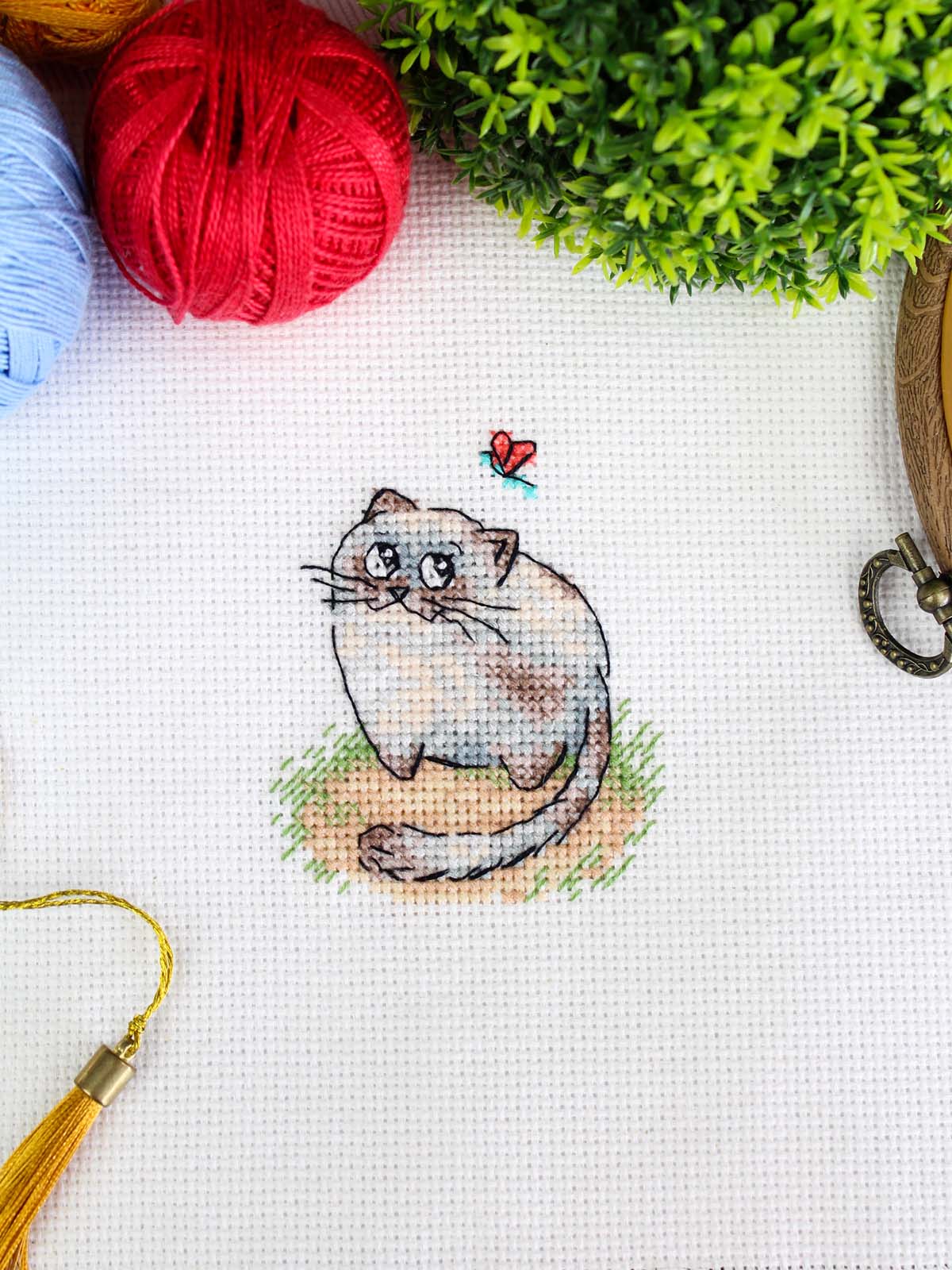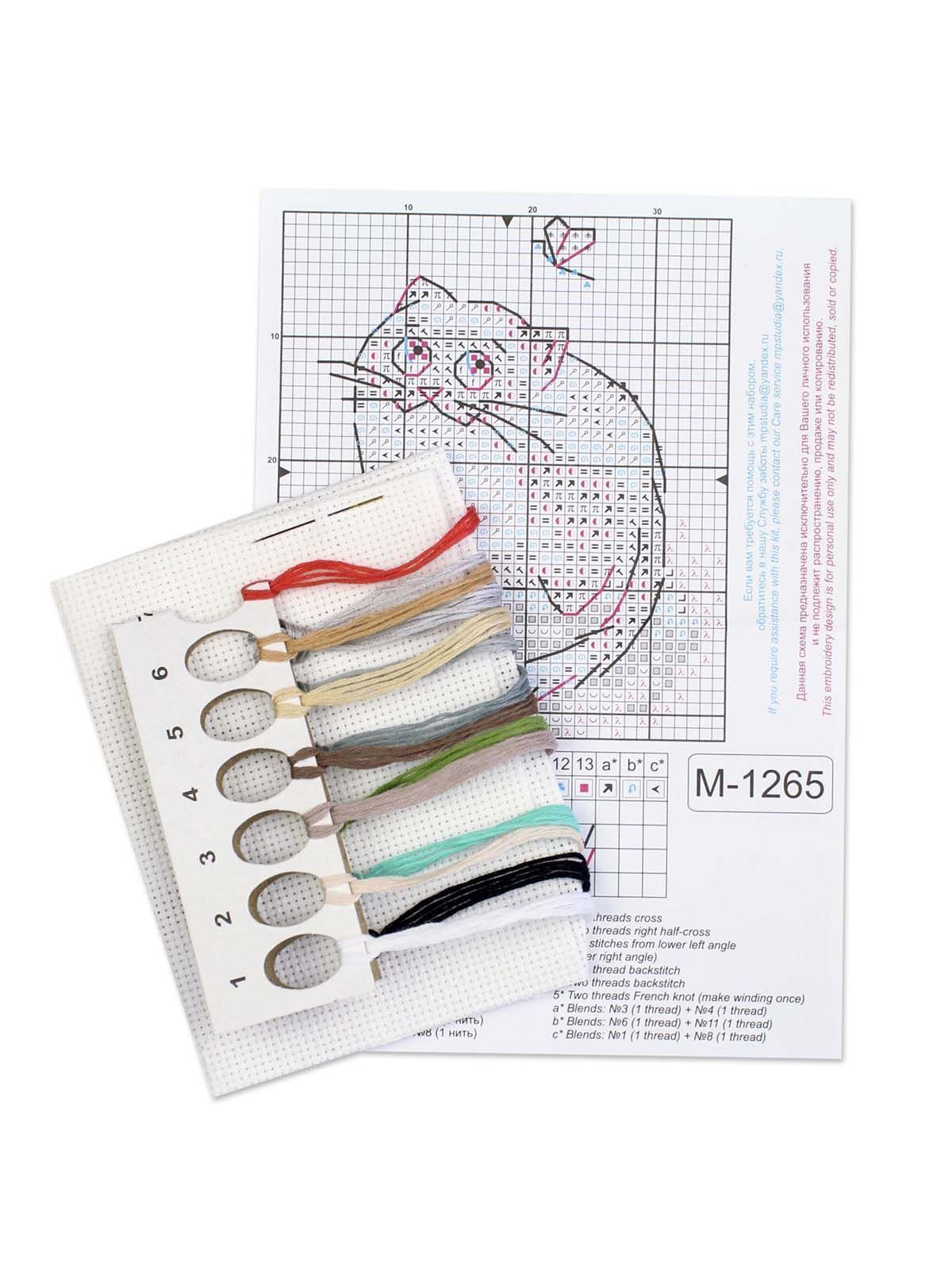 белая канва 14 каунта, нитки мулине ПНК им.Кирова 13 цветов, разобранные на органайзере, игла, схема бумажная и электронная Makosh, руководство по вышиванию.