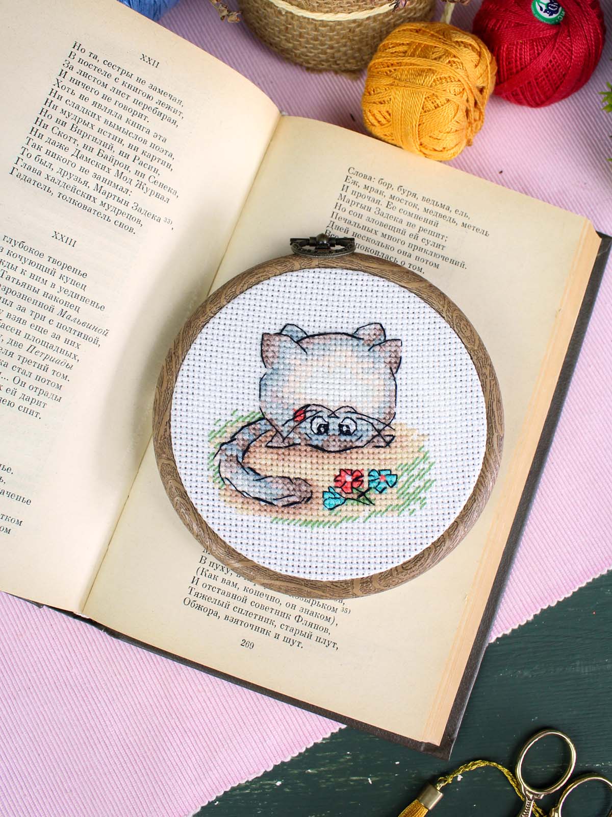 В состав набора входит: белая канва 14 каунта, нитки мулине ПНК им.Кирова 15 цветов, разобранные на органайзере, игла, схема бумажная и электронная Makosh, руководство по вышиванию.