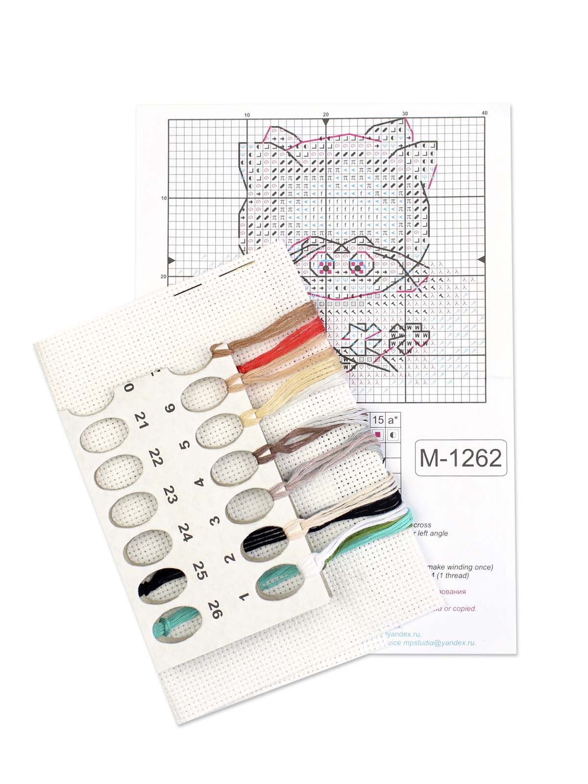 белая канва 14 каунта, нитки мулине ПНК им.Кирова 15 цветов, разобранные на органайзере, игла, схема бумажная и электронная Makosh, руководство по вышиванию.
