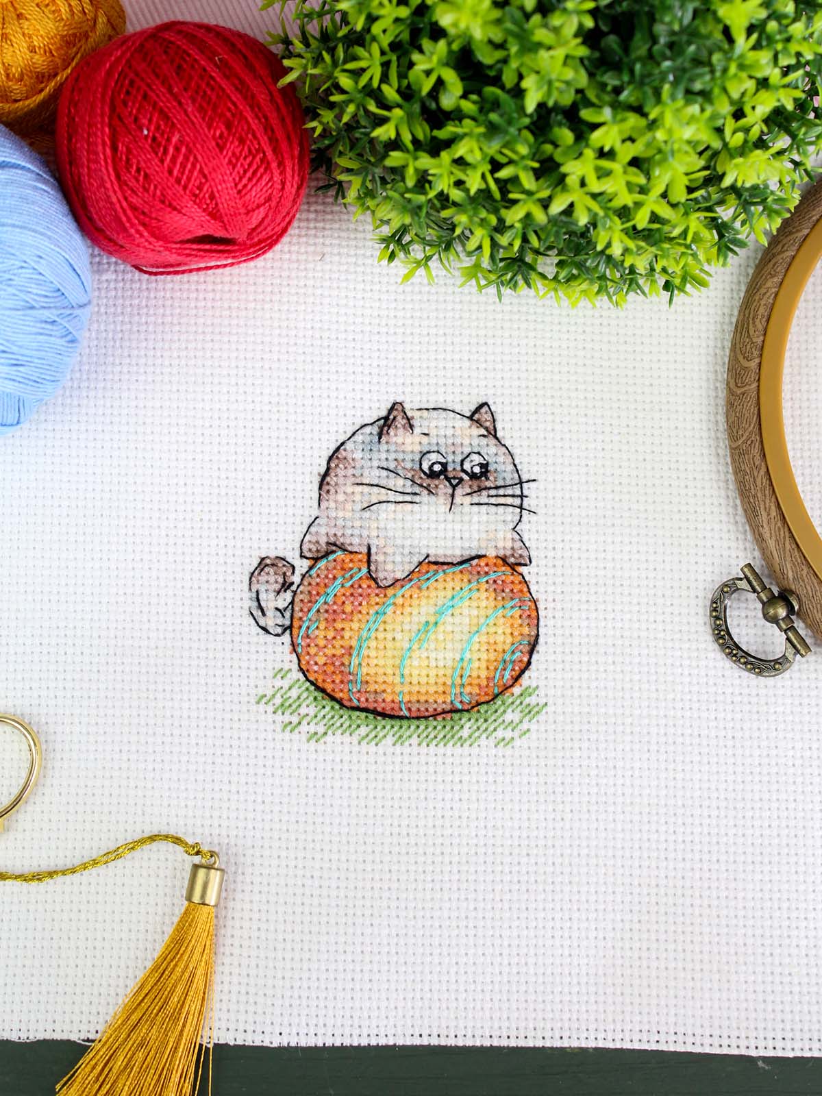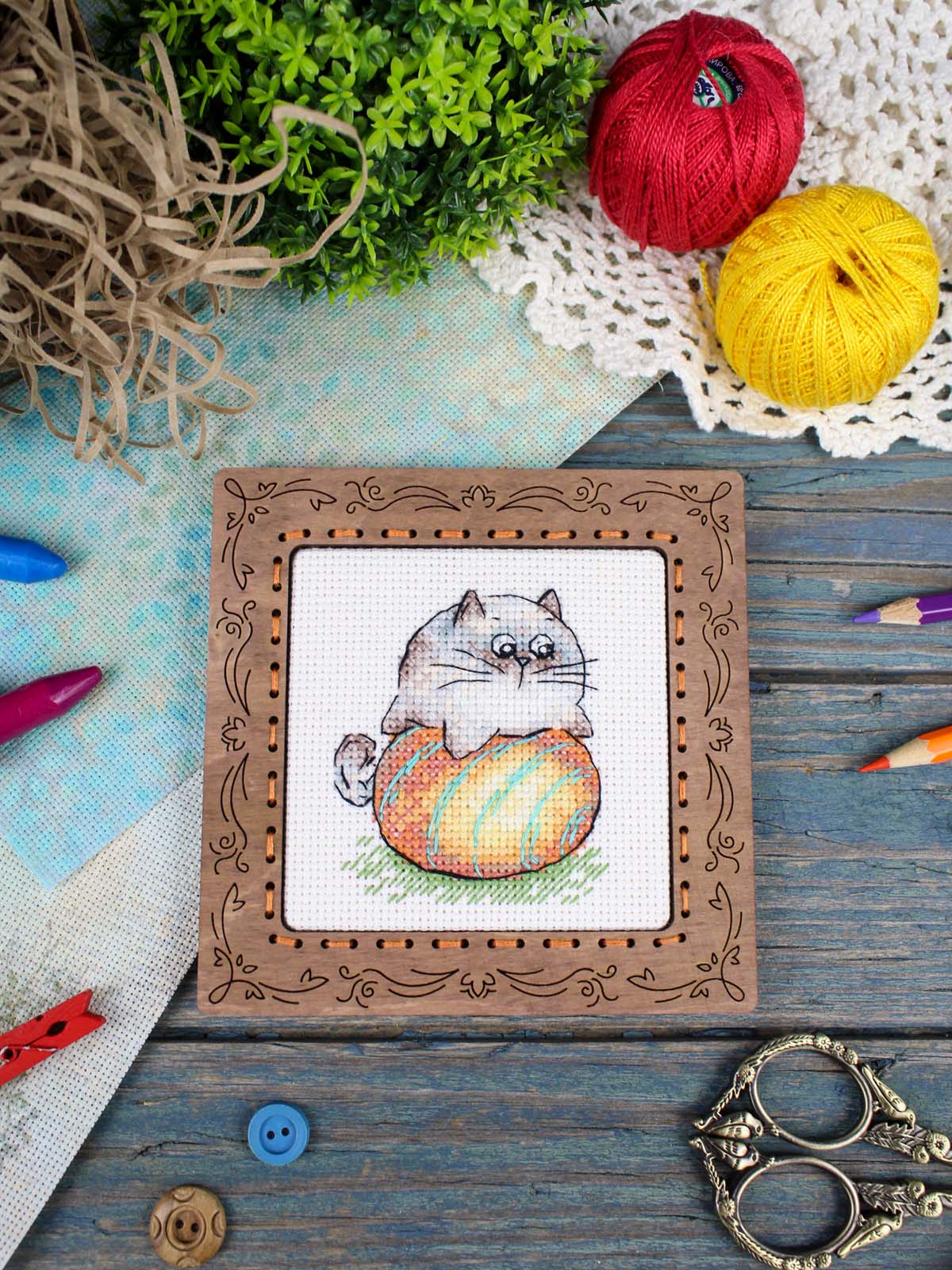 В состав набора входит: белая канва 14 каунта, нитки мулине ПНК им.Кирова 18 цветов, разобранные на органайзере, игла, схема бумажная и электронная Makosh, руководство по вышиванию.