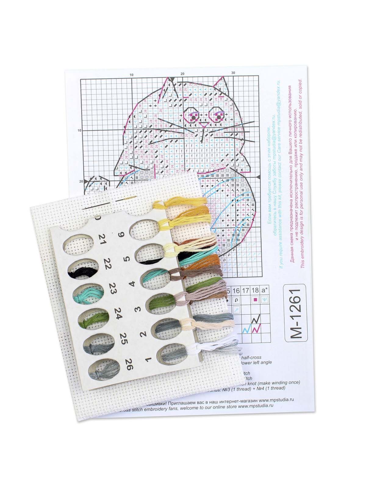 белая канва 14 каунта, нитки мулине ПНК им.Кирова 18 цветов, разобранные на органайзере, игла, схема бумажная и электронная Makosh, руководство по вышиванию.