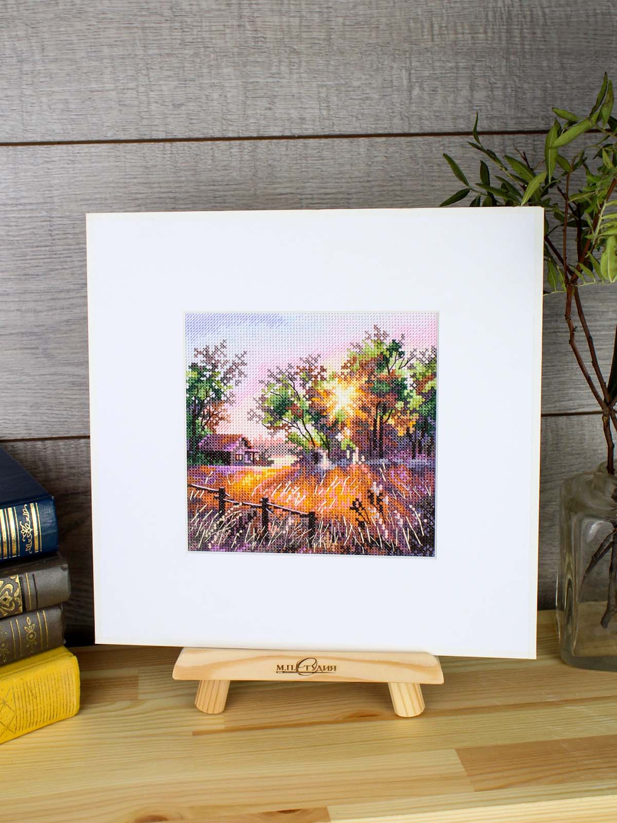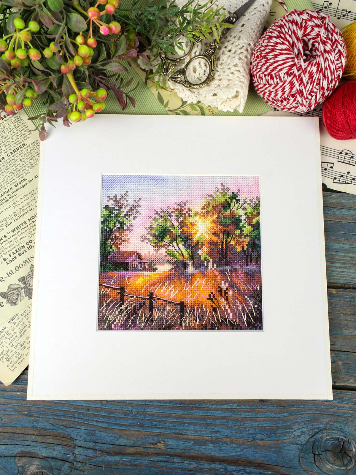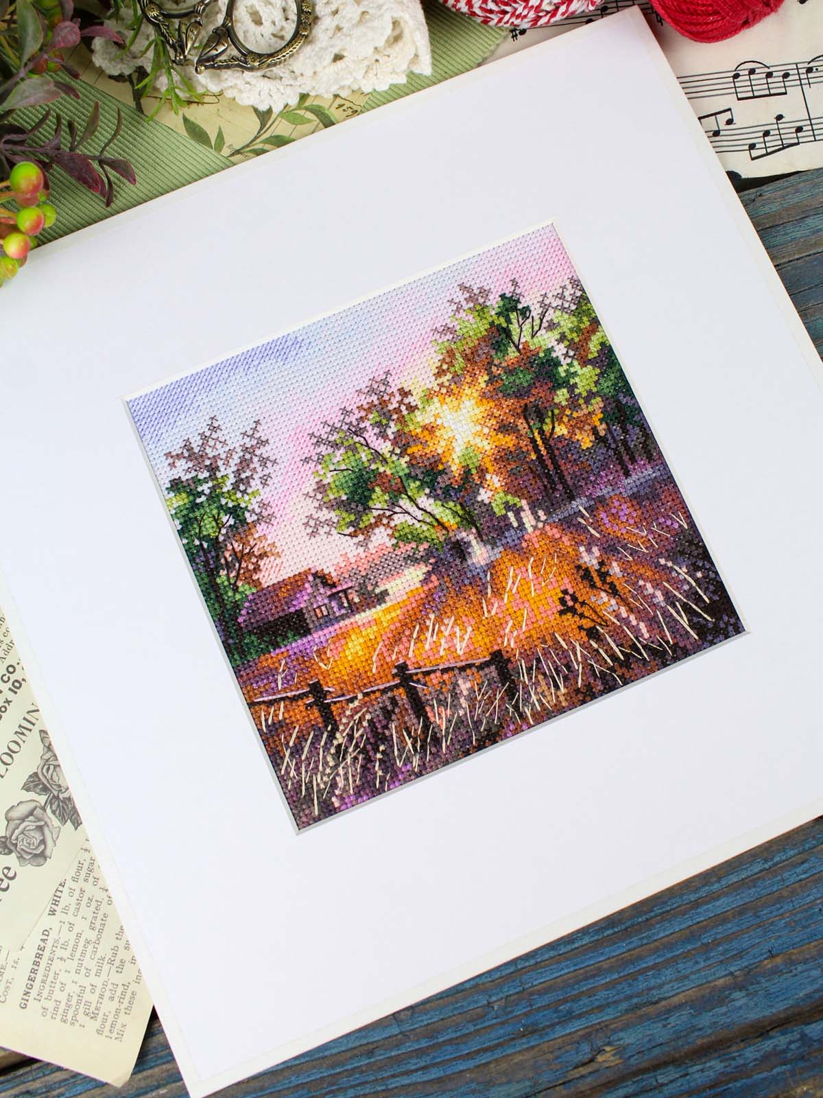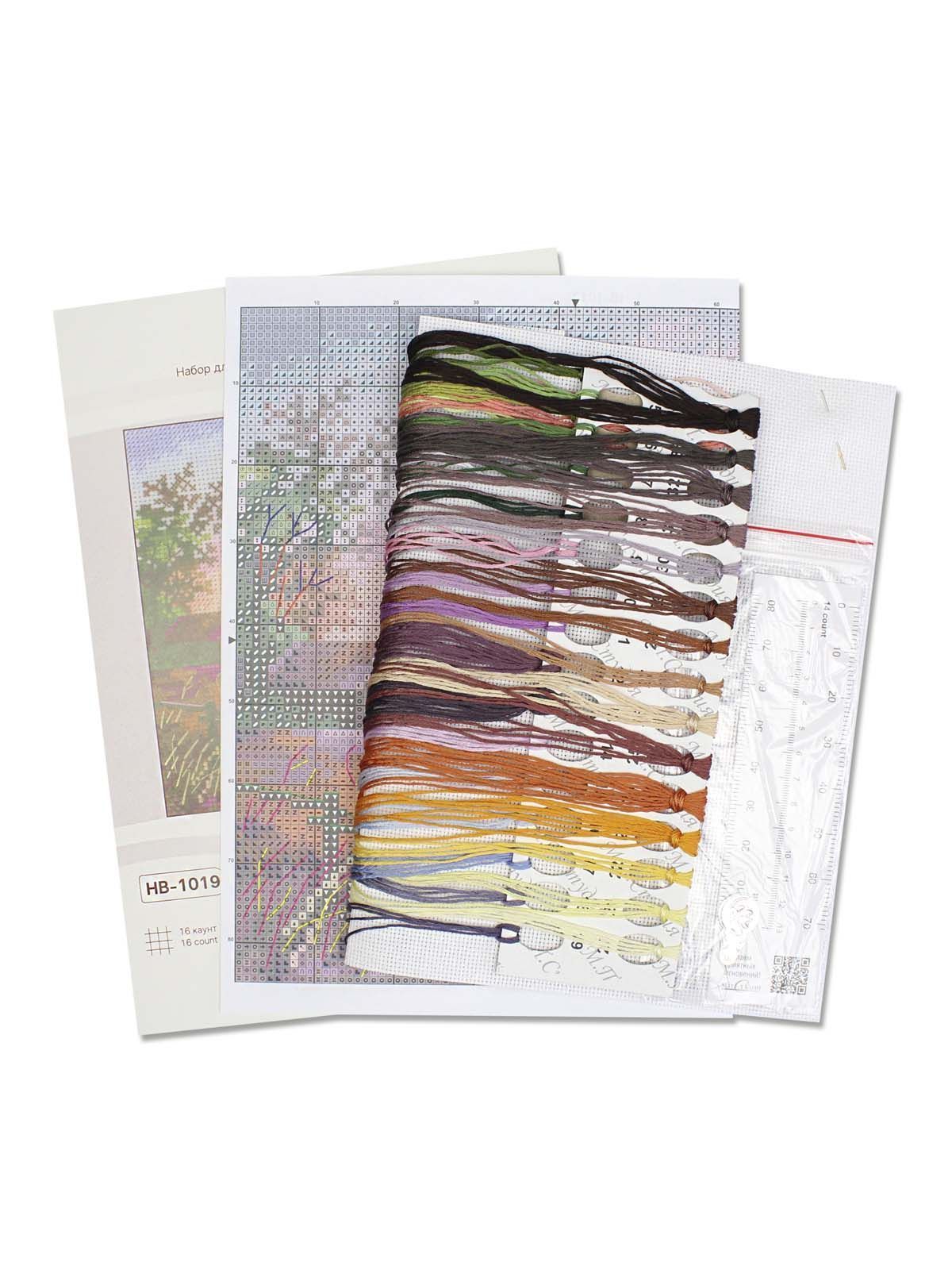 белая хлопчатобумажная канва 16 каунта, нитки мулине Гамма 36 цветов, разобранные на органайзере, игла, бумажная цвето-символьная схема и электронная схема Makosh, вышивальная линейка, нитковдеватель, руководство по вышиванию.