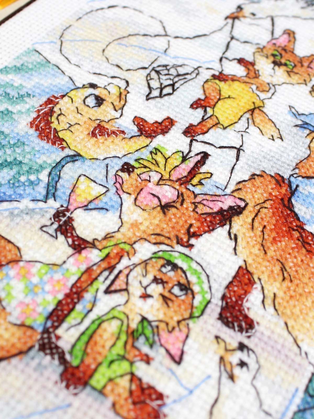 В состав набора входит: белая канва 14 каунта, нитки мулине ПНК им.Кирова 26 цветов, разобранные на органайзере, игла, схема бумажная и электронная Makosh, руководство по вышиванию.
