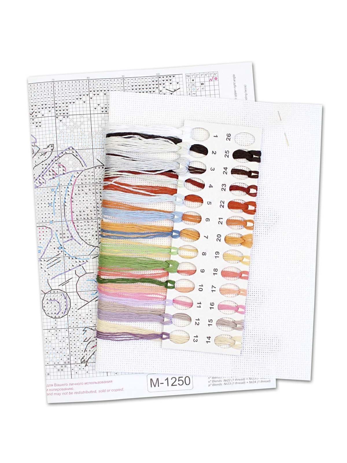 В состав набора входит: белая канва 14 каунта, нитки мулине ПНК им.Кирова 25 цветов, разобранные на органайзере, игла, схема бумажная и электронная Makosh, руководство по вышиванию.