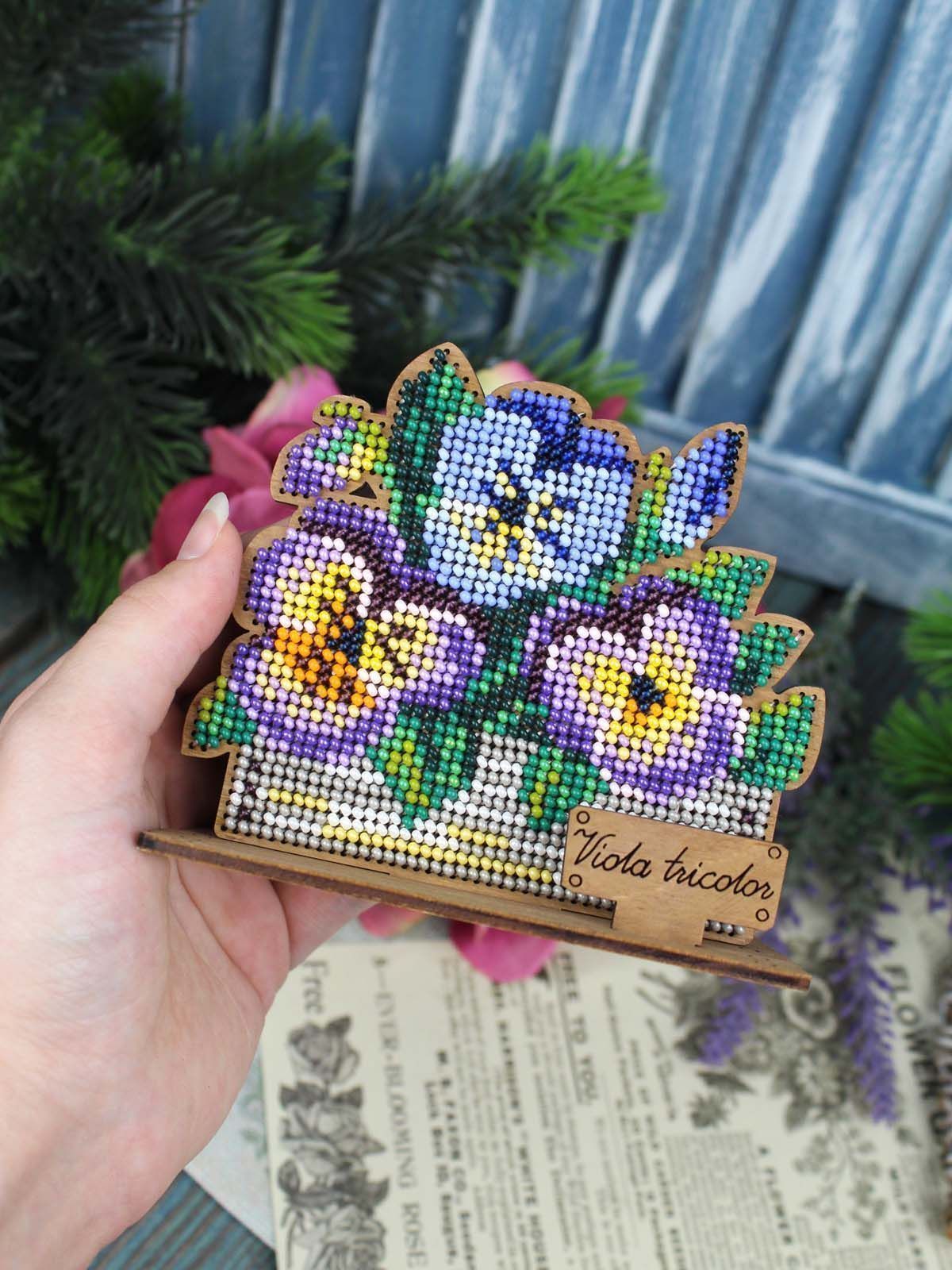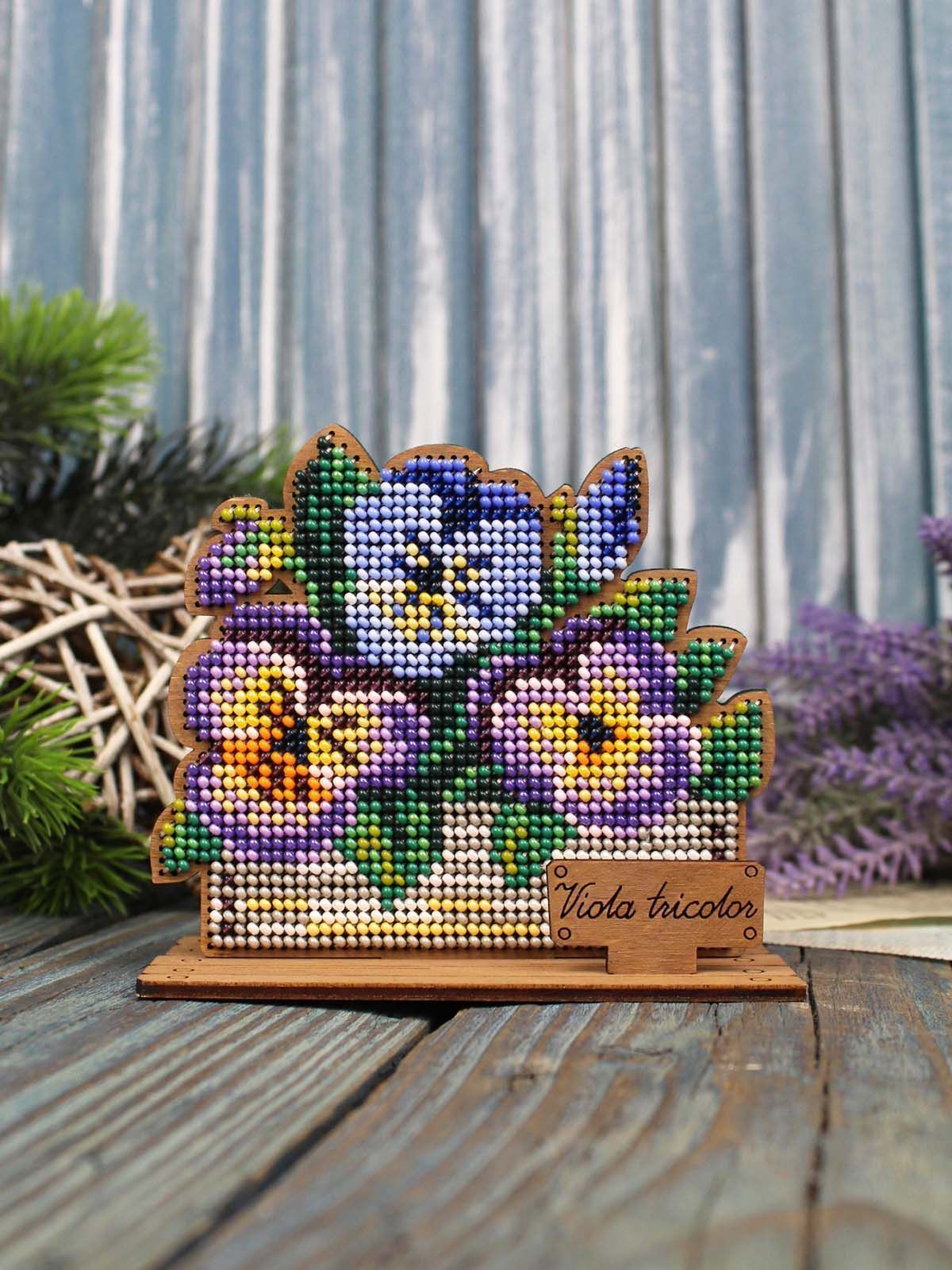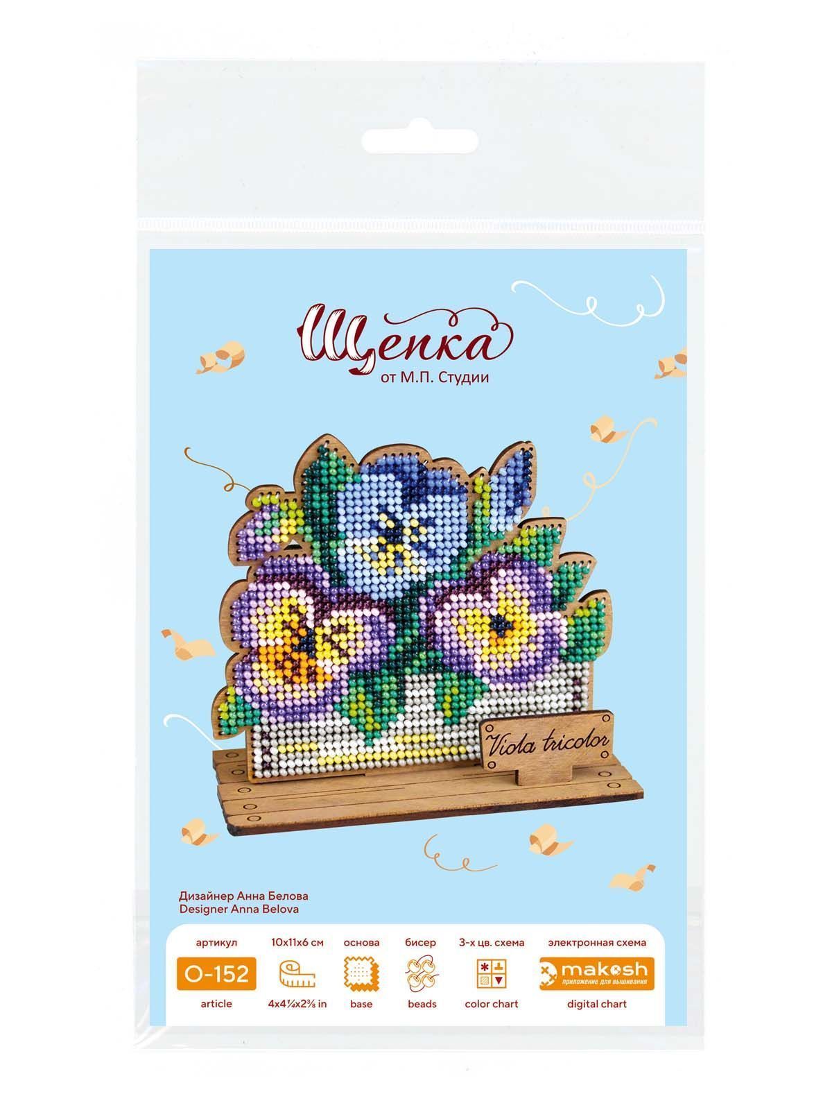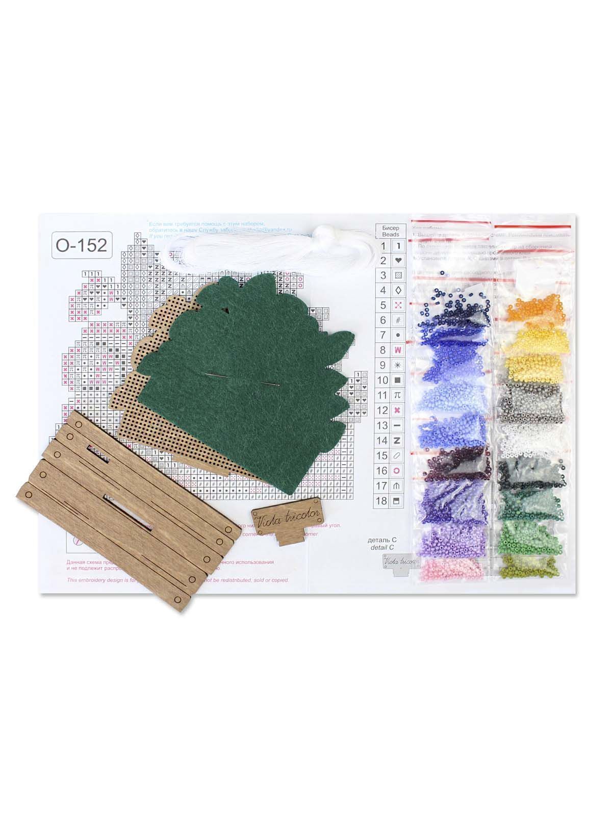 перфорированная деревянная основа, 18 цветов бисера Preciosa, швейные нити, игла, подставка, фетр для обработки изнанки, бумажная символьная схема и электронная схема Makosh, инструкция по выполнению работы.