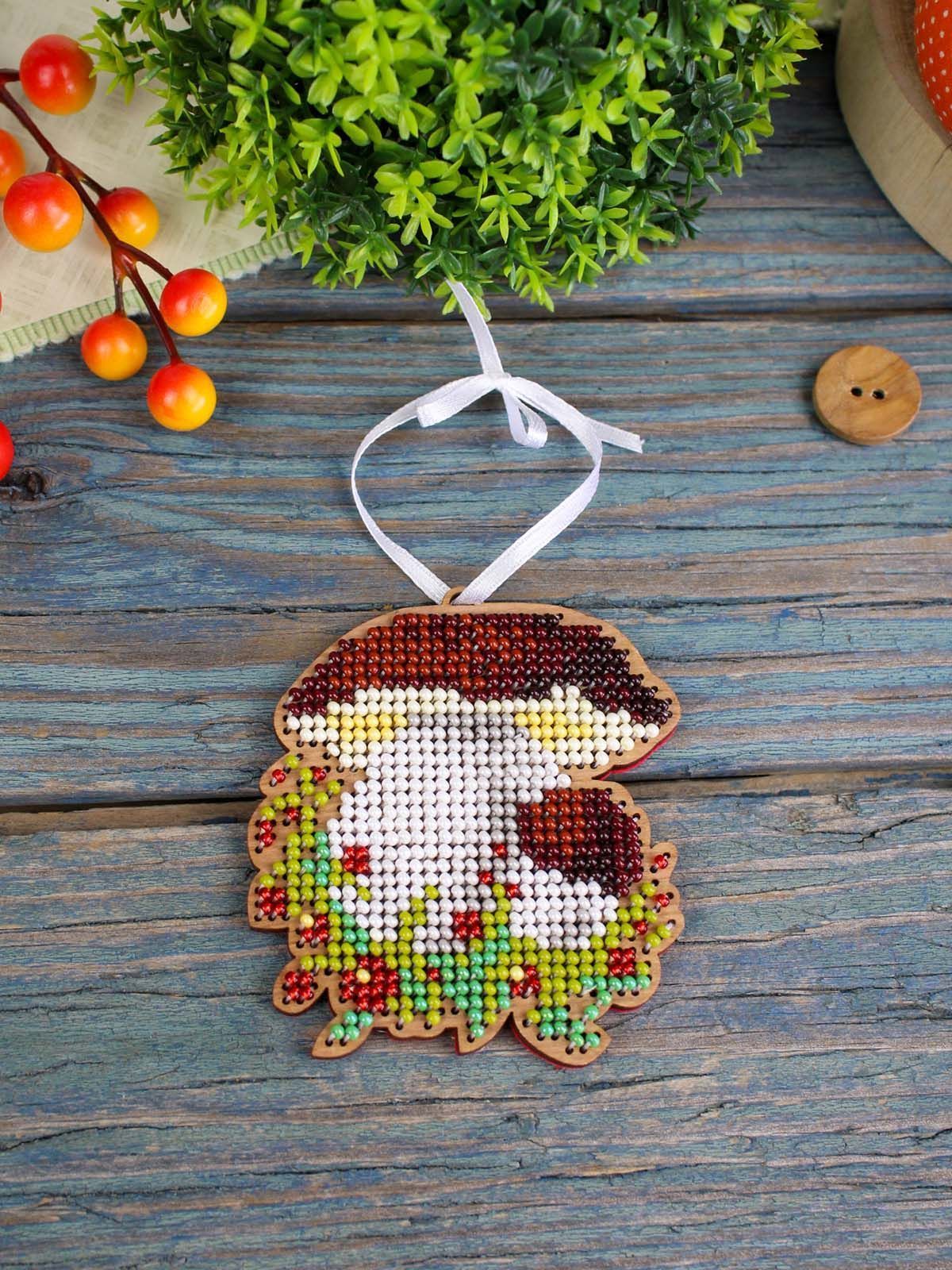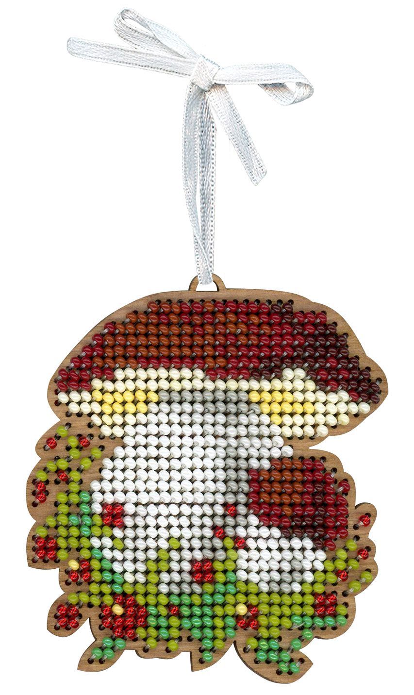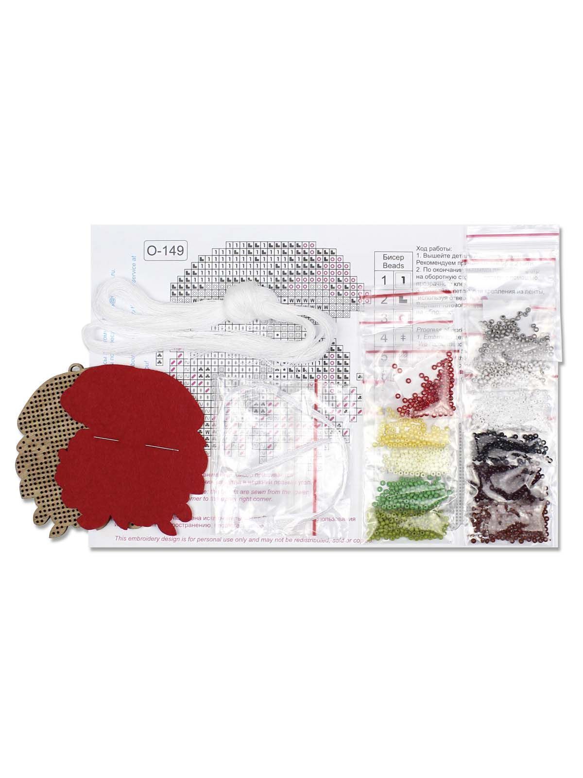 перфорированная деревянная основа, 11 цветов бисера Preciosa, швейные нити, игла, белая лента, фетр для обработки изнанки, бумажная символьная схема и электронная схема Makosh, инструкция по выполнению работы.