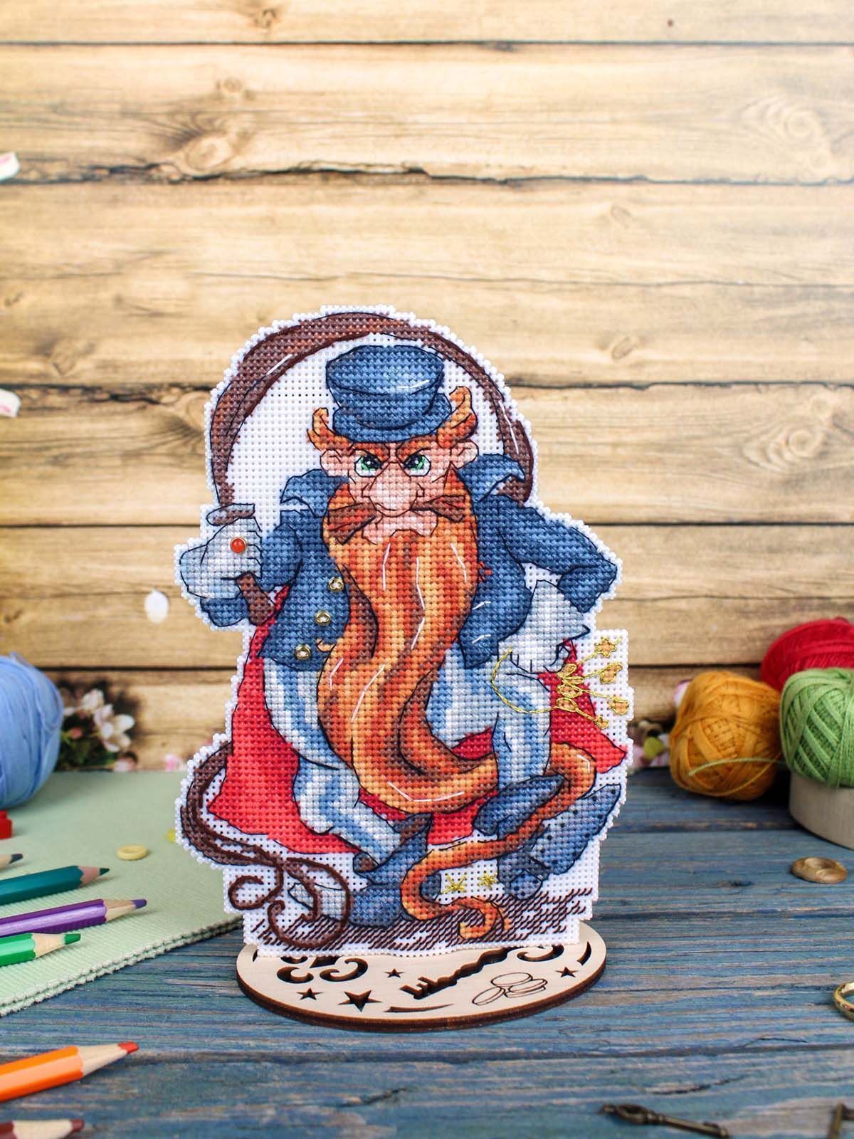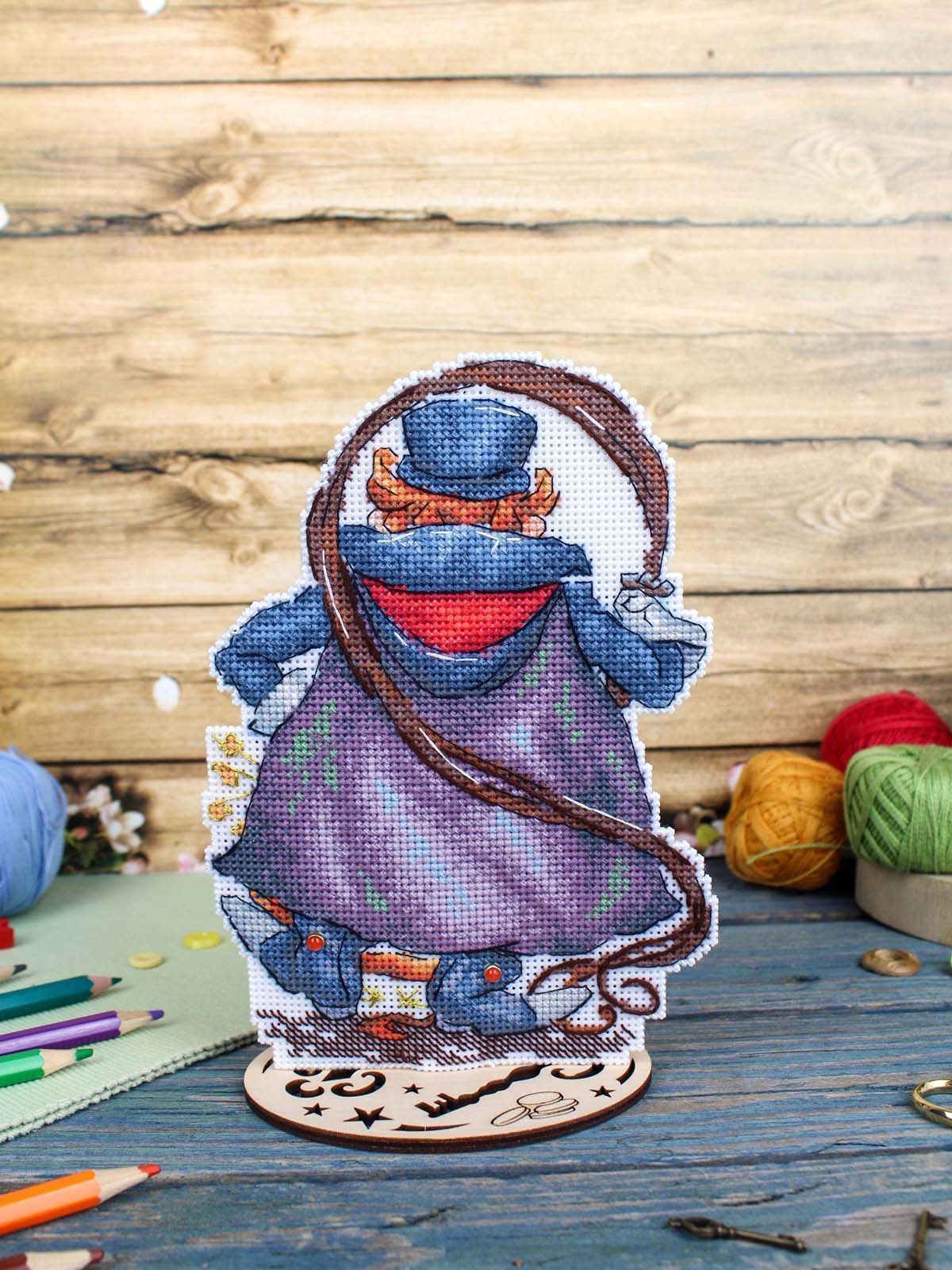 белая пластиковая канва 14 каунта, нитки мулине ПНК им.Кирова 24 цвета, разобранные на органайзере, нитки металлик - 1 цвет, декор - пуговицы, игла, схема бумажная и электронная Makosh, руководство по вышиванию.