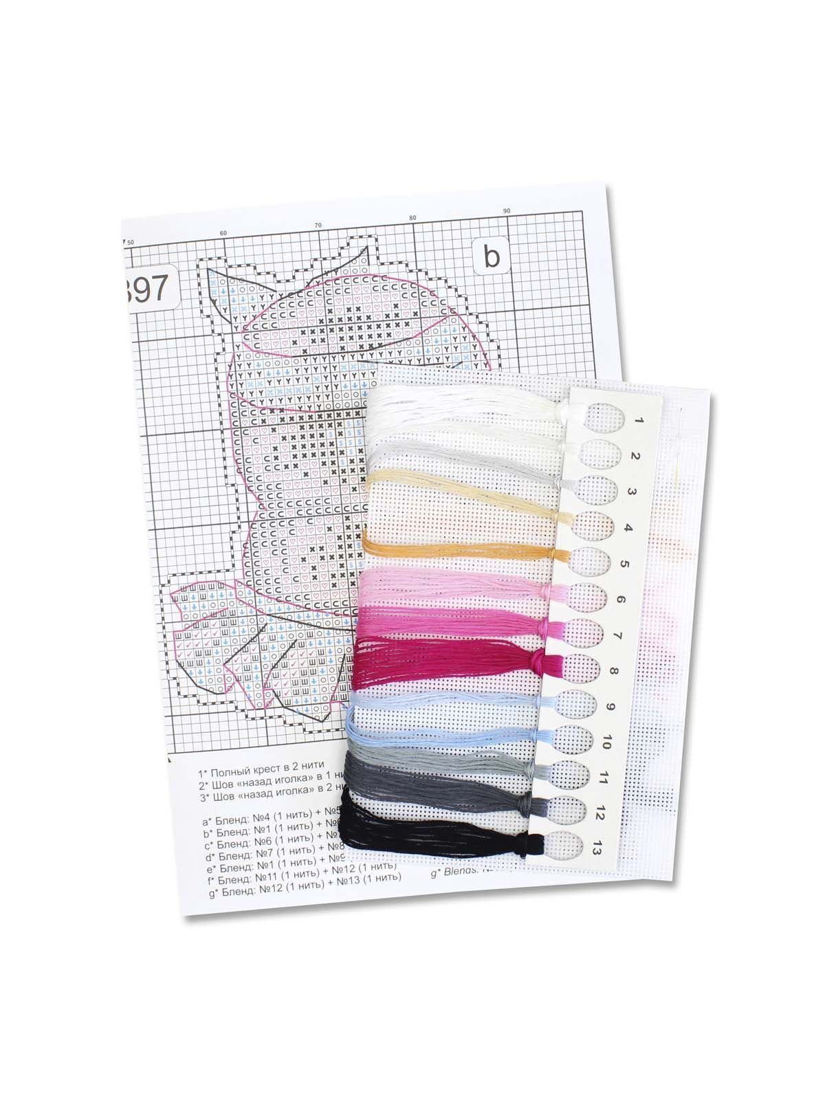 белая пластиковая канва 14 каунта, нитки мулине ПНК им.Кирова 13 цветов, разобранные на органайзере, игла, схема бумажная и электронная Makosh, руководство по вышиванию.