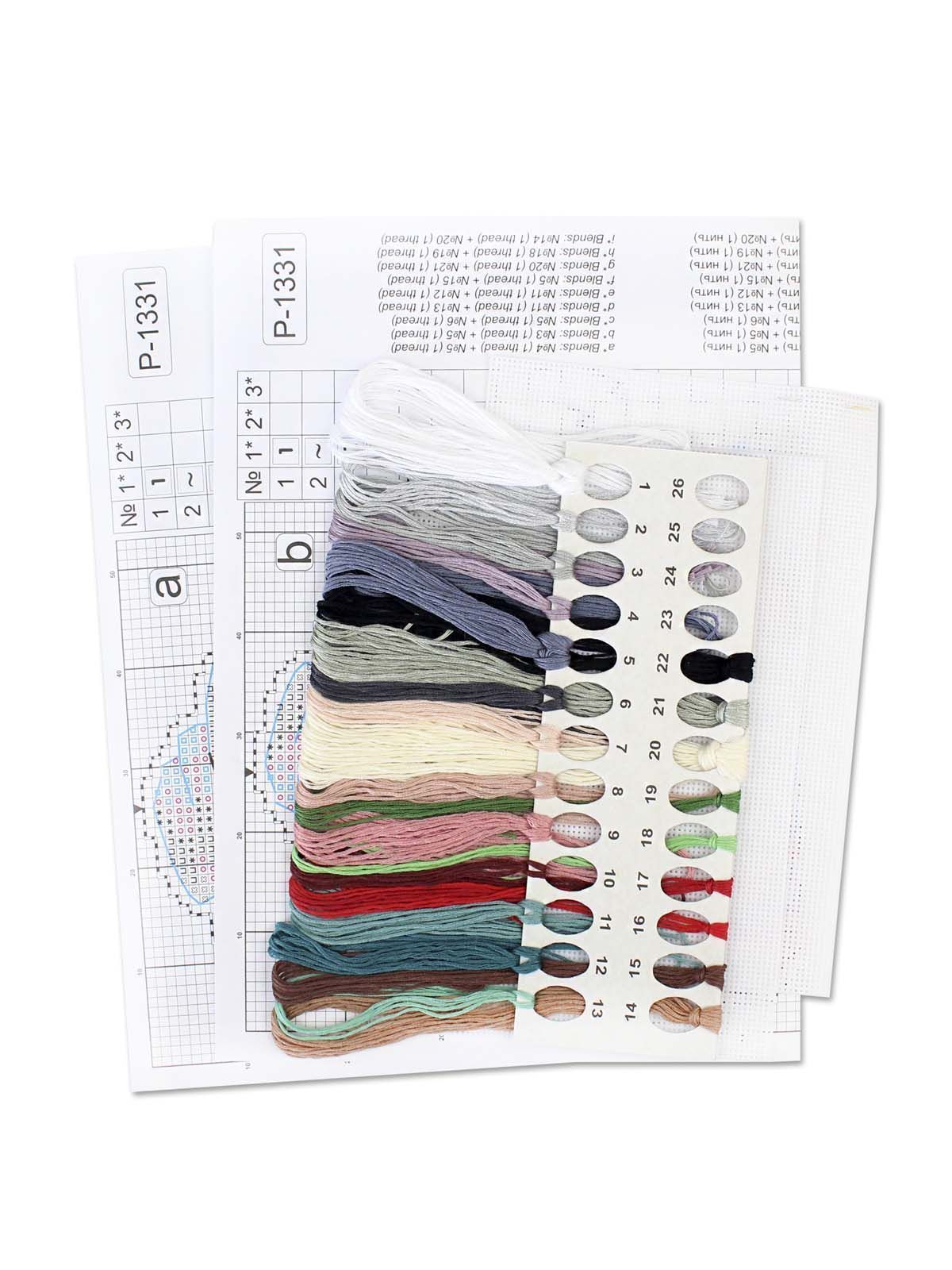В состав набора входит: белая пластиковая канва 14 каунта, нитки мулине ПНК им.Кирова 22 цвета, разобранные на органайзере, игла, схема бумажная и электронная Makosh, руководство по вышиванию.