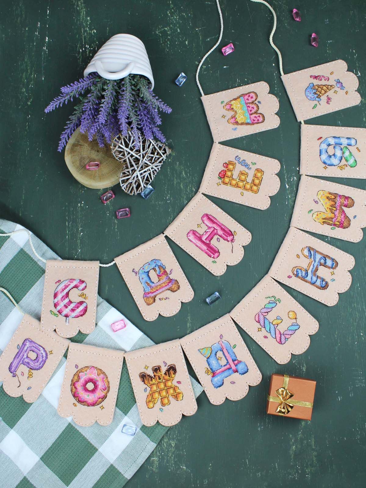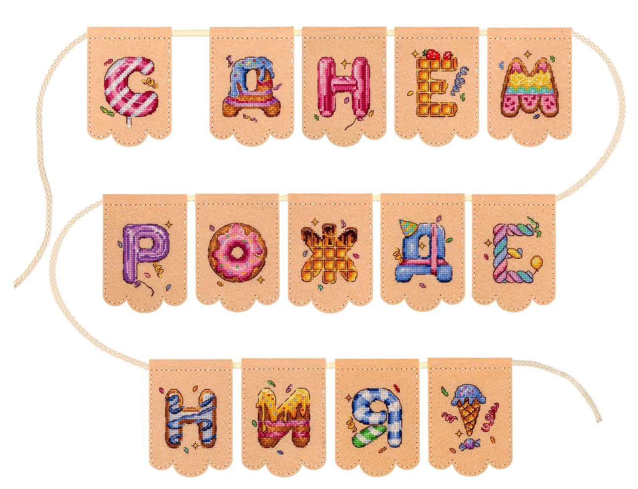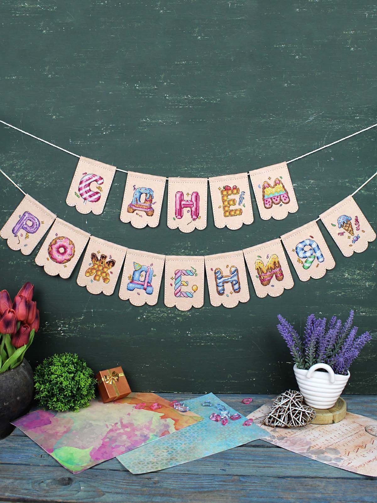 Гирлянда "С Днем Рождения!" на бежевом фетре (14 флажков)