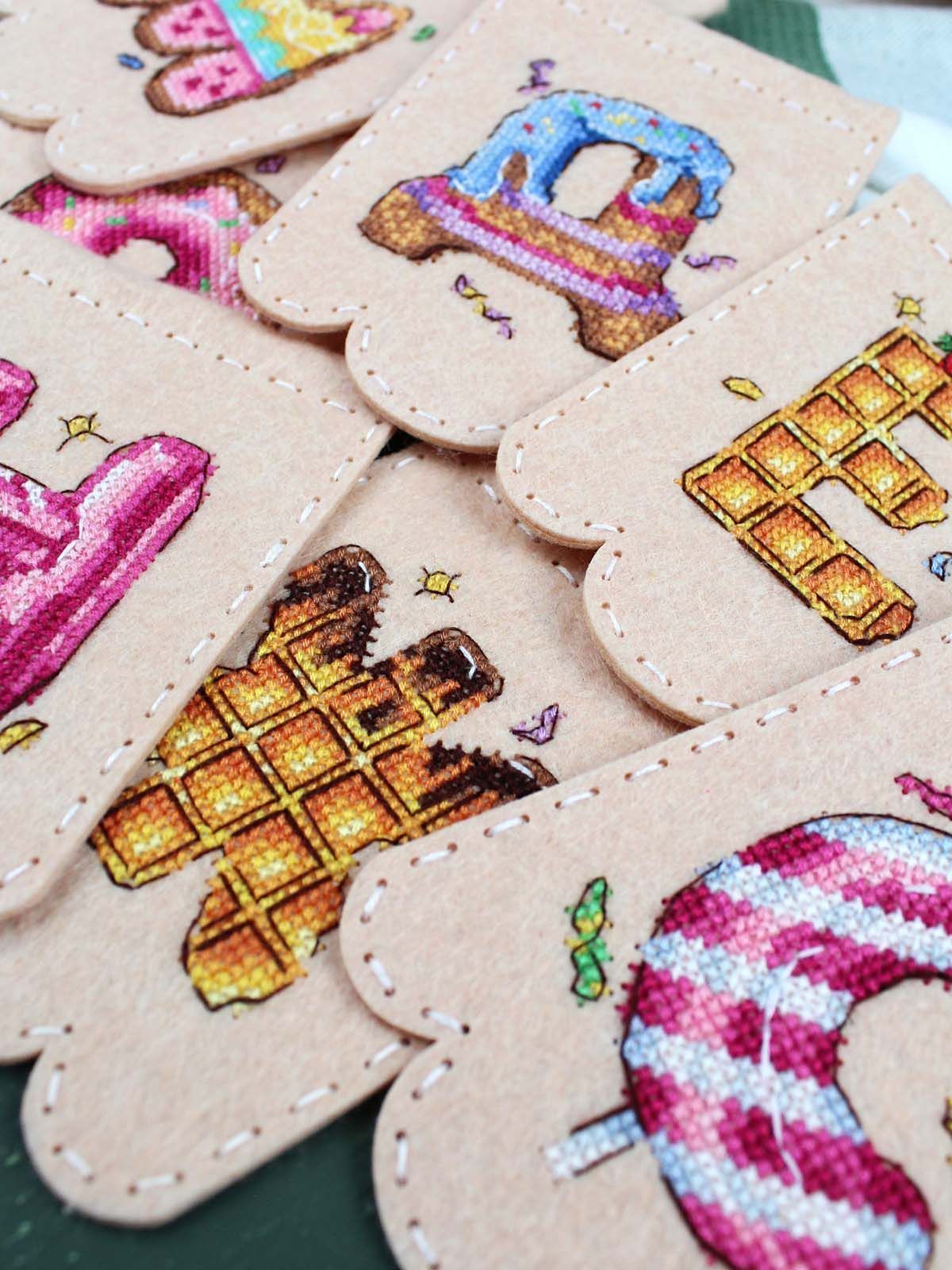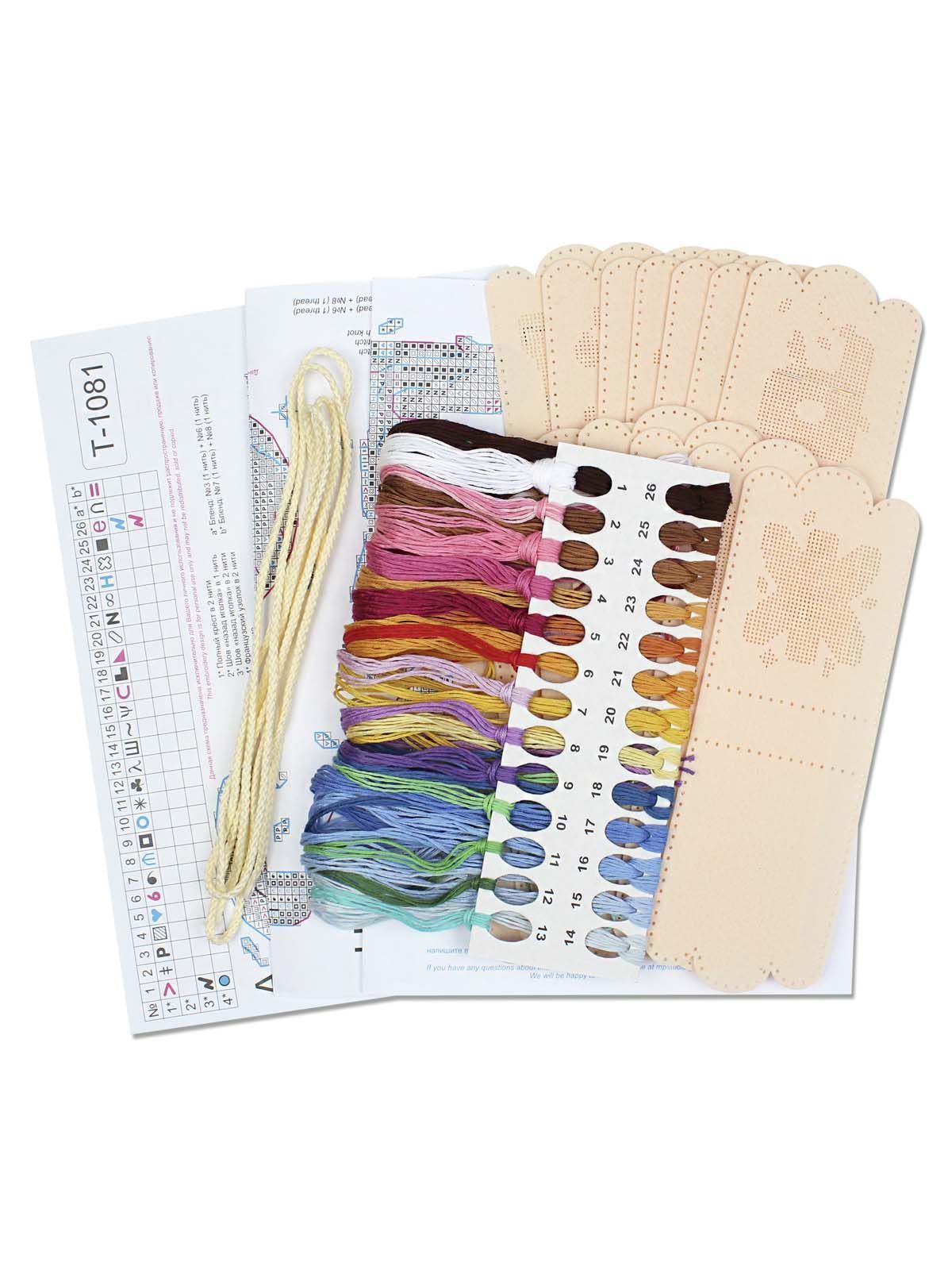 заготовки с перфорацией из фетра бежевого цвета, нитки мулине ПНК им.Кирова 26 цветов, шнур для развески, игла, бумажная схема и электронная схема Makosh, руководство по вышиванию.