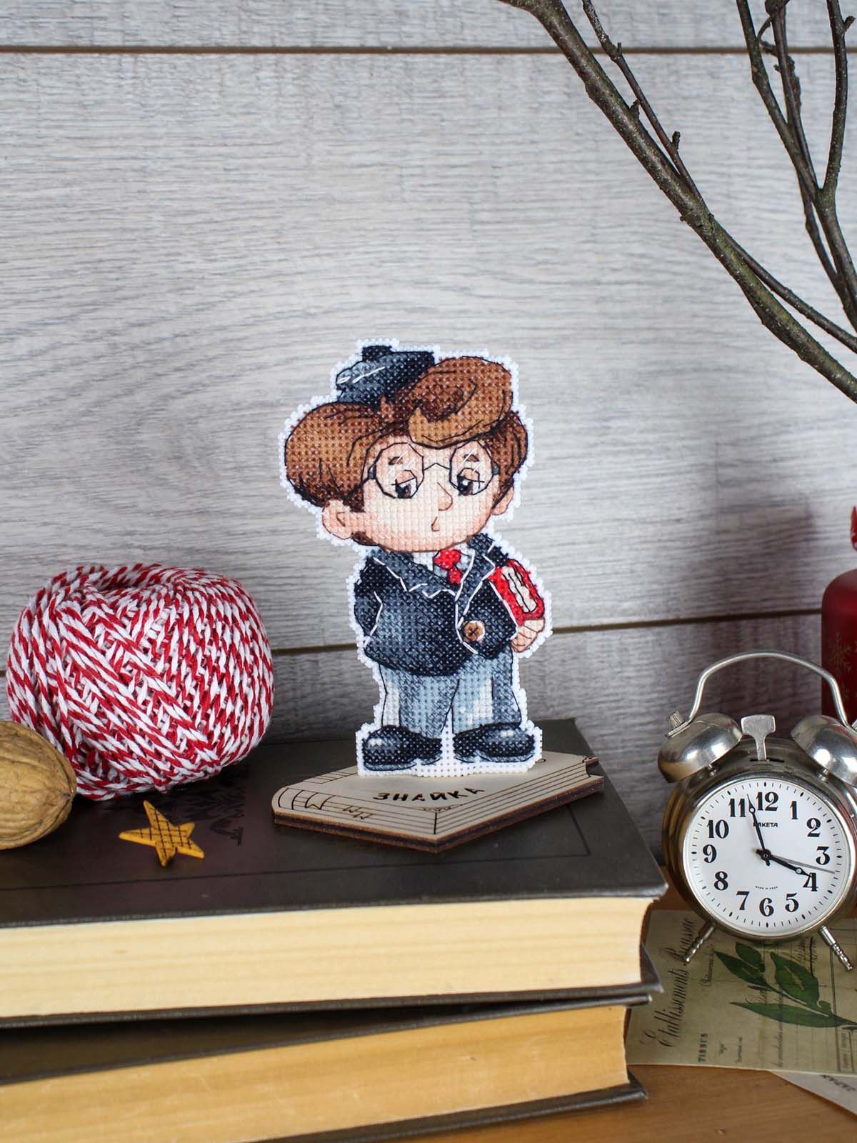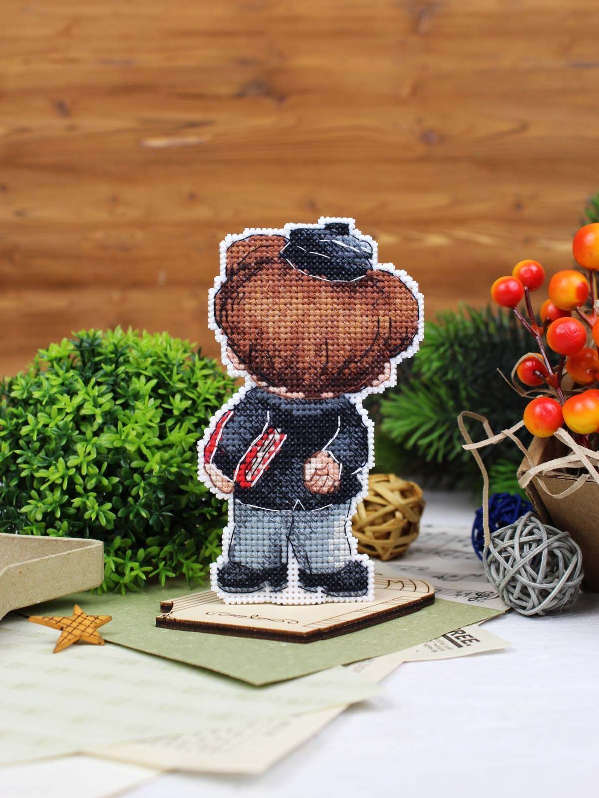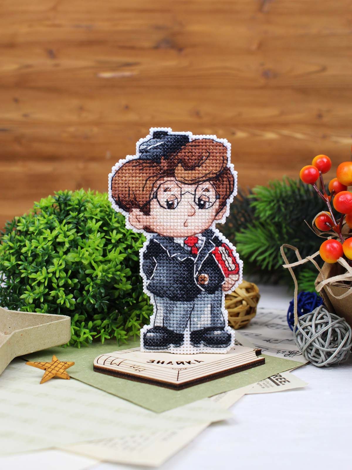белая пластиковая канва 14 каунта, нитки мулине ПНК им.Кирова 13 цветов, разобранные на органайзере, деревянная подставка, игла, схема бумажная и электронная Makosh, руководство по вышиванию.